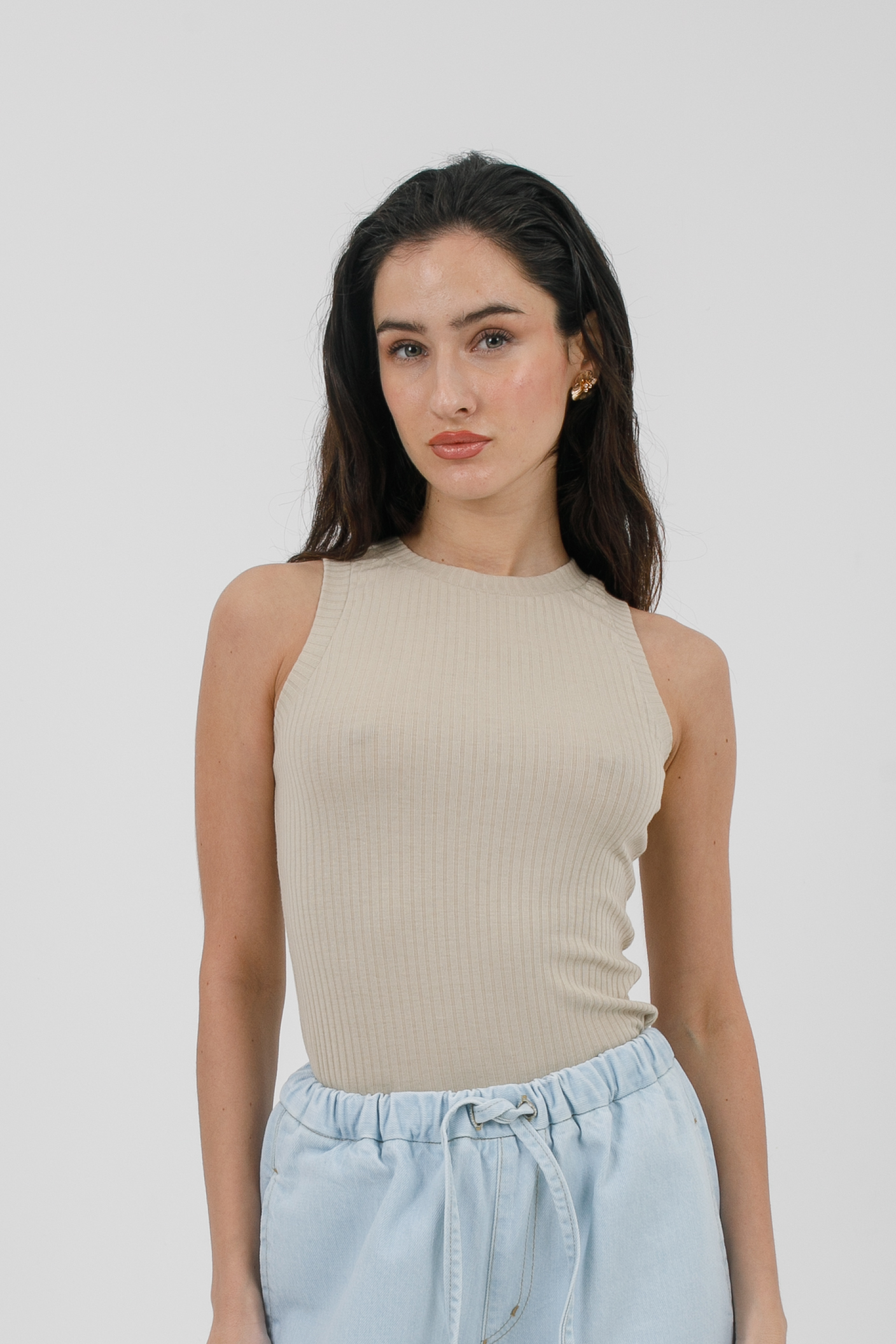 Το Nysa rib αμάνικο top αποτελεί ένα essential κομμάτι με minimal αισθητική και εφαρμογή που αγκαλιάζει το σώμα. Το rib ύφασμα προσφέρει ελαστικότητα και άνεση, δημιουργώντας ένα clean και σύγχρονο αποτέλεσμα.